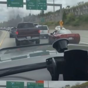 Corvette Driver Attempts to Block Truck—Gets Engulfed in Thick Black Smoke