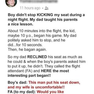 A Kid Kept Kicking My Seat the Entire Flight — Then My Dad Taught the Parents a Lesson They’ll Never Forget