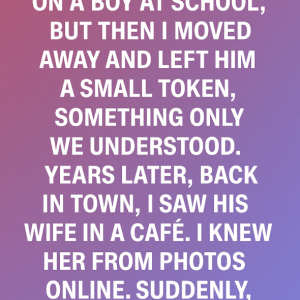 I had a huge crush on a boy at school, but then I moved away and left him a small token, something only we understood. Years later,…