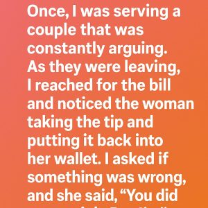 I work as a waitress at a small family restaurant. One afternoon, I served a couple who spent the entire meal in tense silence. I smiled through…