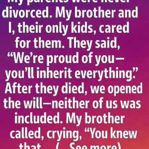 My parents were never divorced. My brother and I, their only kids, cared for them. “We’re proud of you — you’ll inherit everything.”, they said. After they…