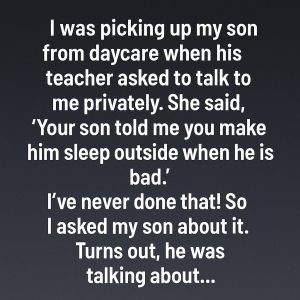 I was picking up my son from daycare when his teacher gently asked if we could talk in private. Her expression was serious, and my heart began…