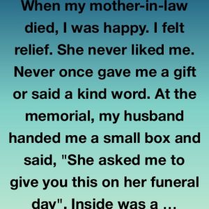 When my mother-in-law died, I didn’t cry—just felt relief. She’d spent ten years disapproving of me. But at her memorial, my husband handed me a velvet box….