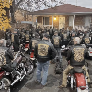 They began arriving just after midnight — a steady line of motorcycles rolling quietly down our street, headlights glowing in the dark until nearly thirty riders stood…