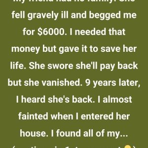 My friend had no family. She fell gravely ill and begged me for $6000. I needed that money, but gave it to save her life. She swore…