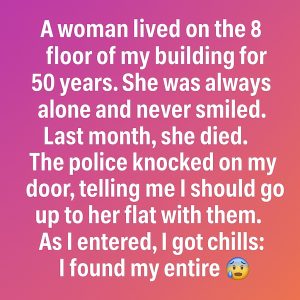 A woman lived on the 8th floor of my building for 50 years. She kept to herself and rarely interacted with anyone. Last month, she peacefully passed…