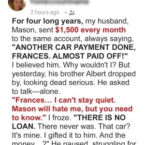 My Husband Claimed He Spent $1,500 Every Month on a Car Loan – After 4 Years, His Brother Revealed the Truth