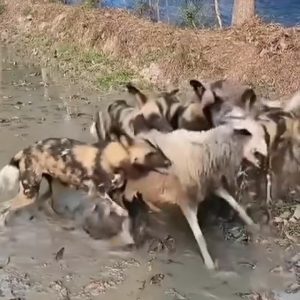 group of wild African dogs attacked a sheep in a sudden and intense encounter that was captured on video. The footage shows the pack’s coordinated hunting behavior…