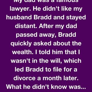 My dad was a famous lawyer. He didn’t like my husband Bradd and stayed distant. After my dad passed away, Bradd quickly asked about the wealth. I…