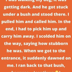 I was walking my dog, it was getting dark. And he got stuck under a bush and stood there. I pulled him and called him. In the…