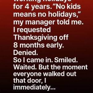 I was the only one working holidays for 4 years. “No kids means no holidays,” my manager told me. I requested Thanksgiving off 8 months early. Denied….