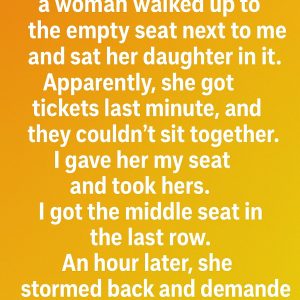 After I got on the plane, a woman walked up to the empty seat next to me and sat her daughter in it. Apparently, she got tickets…