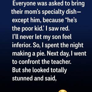 The next morning, I walked into the classroom, clutching the pie I’d baked. My heart was pounding, but I was determined to stand up for my son….