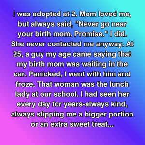I was adopted at 2. Mom loved me, but always said, “Never go near your birth mom. Promise.” I did. She never contacted me anyway. At 25,…