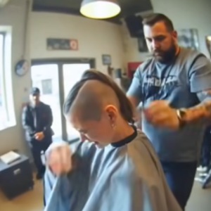 A Moment of Silence As the clippers buzzed, the barbershop suddenly fell quiet. Her soft sobs echoed in the room. Then, a warm hand touched her shoulder….