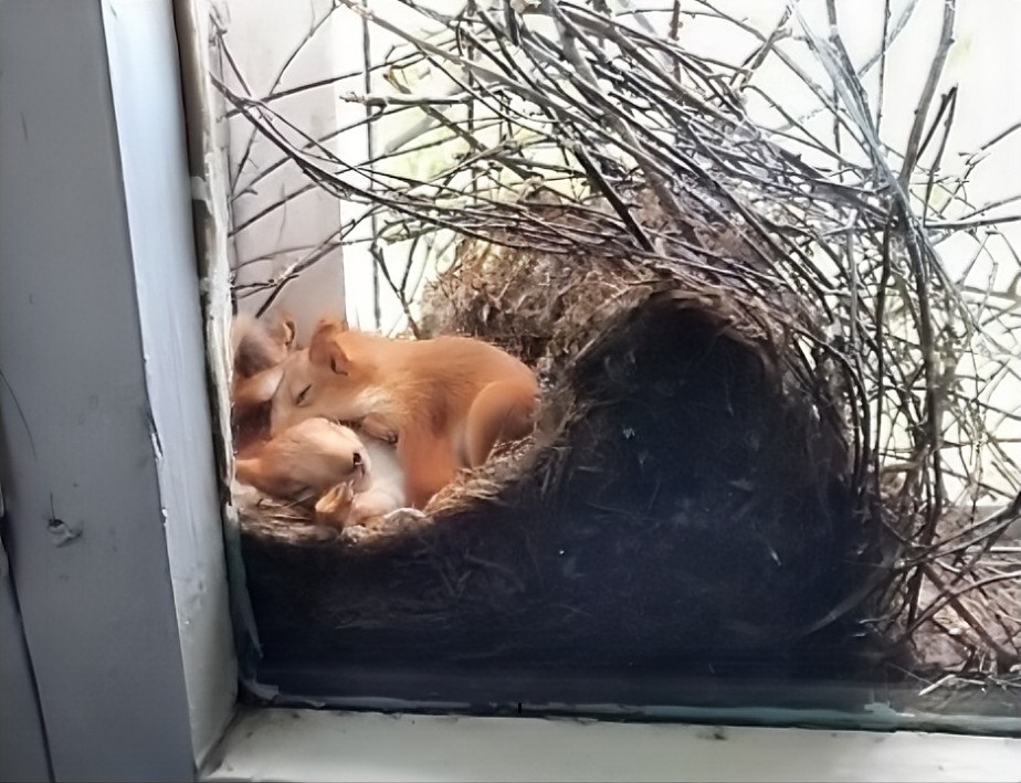 There were two little squirrels sleeping in a nest. The voices were coming from here. The curtain in the room had been closed for the past few weeks, so she hadn’t noticed that the lovely animals were making a nest here. “I have to get this on camera,” she thought eagerly. She immediately took her camera and took pictures of the cute squirrels. She couldn’t believe her luck.
