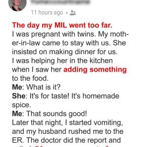 Melissa, pregnant with twins, invited her mother-in-law, Penny, to help during her difficult pregnancy. However, tensions arose when Penny added a potentially harmful ingredient to Melissa’s food….