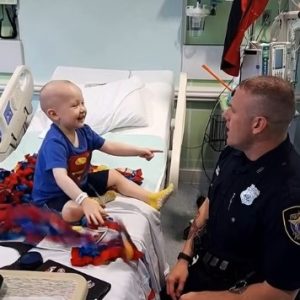 “A SURPRISE FROM AN AMERICAN SOLDIER: A CANCER STRICKEN BOY AND THE GIFT THAT CHANGED HIS LIFE” In a small town in Ohio, USA, 9-year-old Ethan was spending long days in the children’s hospital, fighting a vicious battle against cancer. Each day was a challenge: chemotherapy sessions, painful aches, sleepless nights, and the fear of seeing needles. His mother, Mrs. Linda, always held his hand during those moments, but Ethan’s eyes grew increasingly sad, as if he had lost his faith in life. One autumn morning, as Ethan woke up after a long night of chemotherapy, a knock echoed at the door. Standing before him was an American soldier in a police uniform, his smile warm yet commanding. He introduced himself as Sergeant James, a former military man now serving in the local police force, and explained that he wasn’t just here to say hello—but to bring a “very special surprise.”