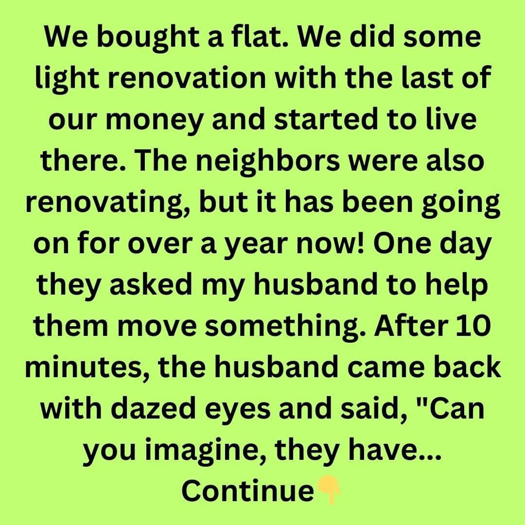 We bought a flat. We did some light renovation with the last of our money and started to live there. The neighbors were also renovating, but it has been going on for over a year now!