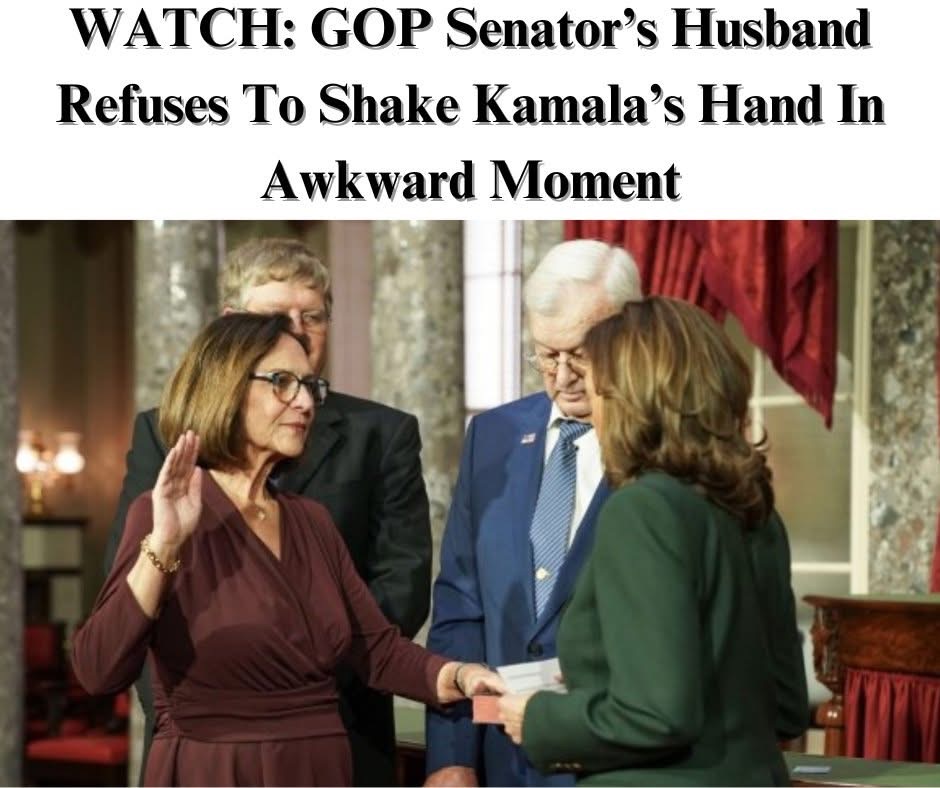 Social media users are hailing Nebraska Republican Sen. Deb Fischer’s husband as their “spirit animal,” following his apparent refusal to shake Vice President Kamala Harris’s hand during his wife’s swearing-in ceremony.Harris, who by constitutional law presides over the upper chamber and is empowered to cast the deciding vote in the event of a tie, swore in the U.S. senators for the 119th Congress.