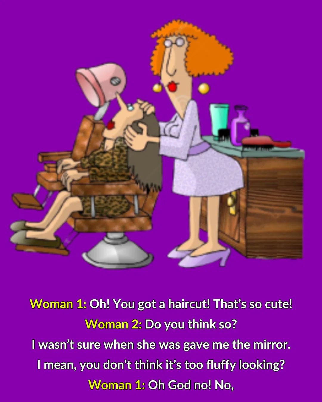 Woman 1: Oh! You got a haircut! That’s so cute!