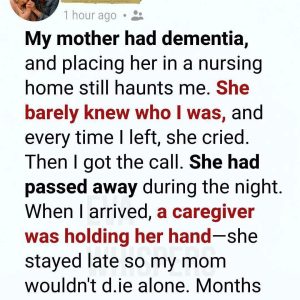 The guilt was unbearable. I left my mother in a nursing home, convinced Iβd failed her when she needed me most. Every visit tore me open. Every…