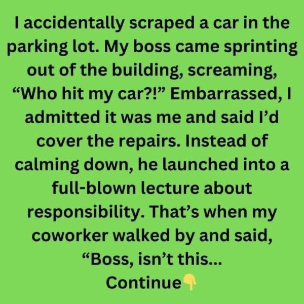 accidentally scraped a car in the parking lot. My boss came sprinting out of the building, screaming,