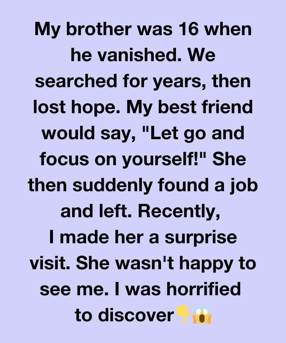 I went inside and froze when I found my brother’s jacket on the chair. The apartment also had a very familiar scent—it was my brother’s favorite perfume. My friend looked flustered. Later, I was horrified to discover that she was actually living with my brother.