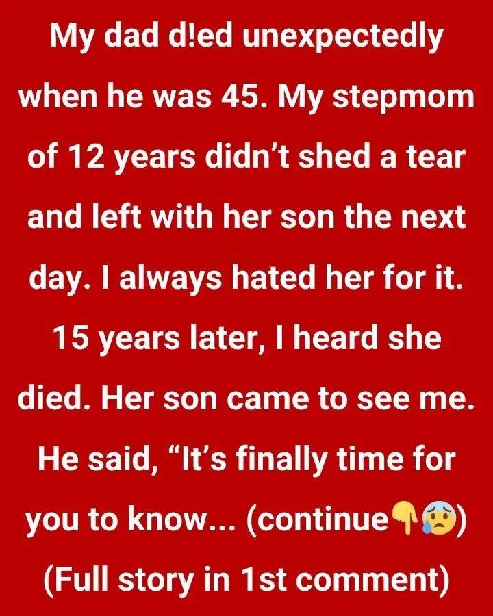 been with him for convenience, using him as a stepping stone in her life. But 15 years later, I received a call that would completely change my perspective. It was her son, now an adult, calling to inform me that my stepmother had passed away. He asked to meet me.
