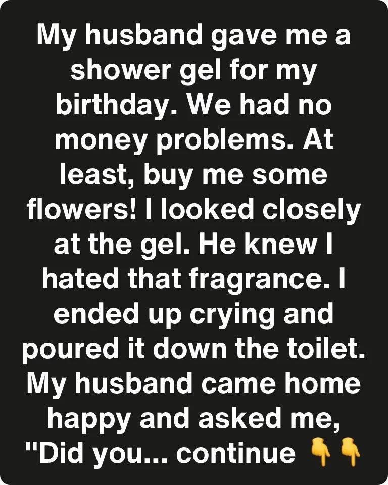 He was aware that I detested that scent after I took a close look at the gel. I eventually broke down in tears and flushed the gel down the toilet.