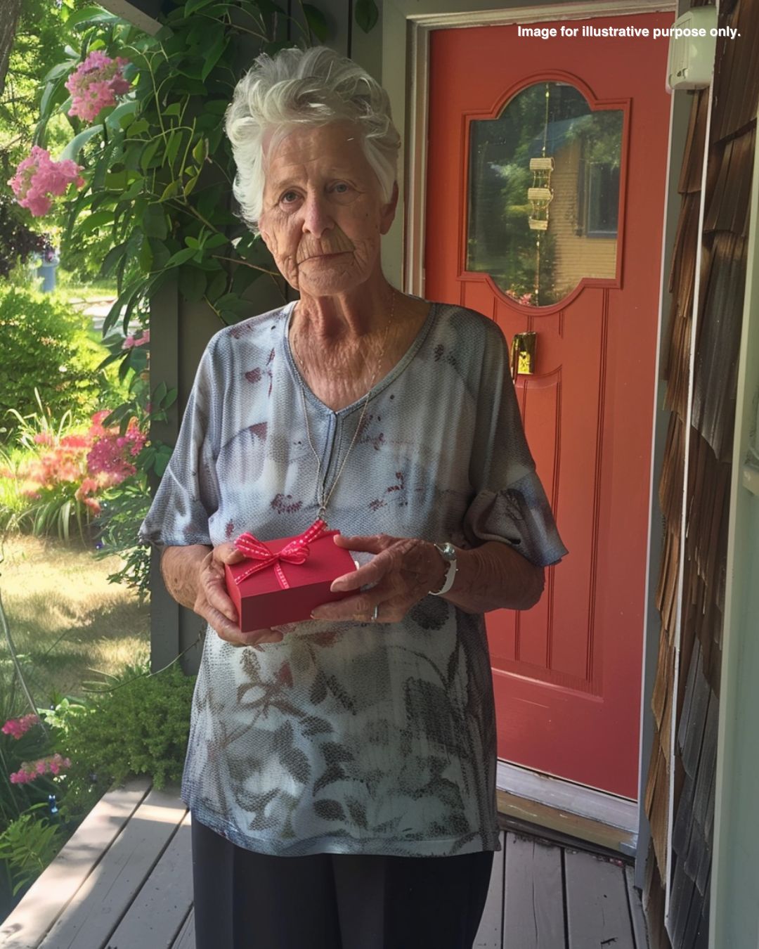 A woman stood in front of him, her silver-streaked hair catching the afternoon light, holding a small red box tightly in her hands.