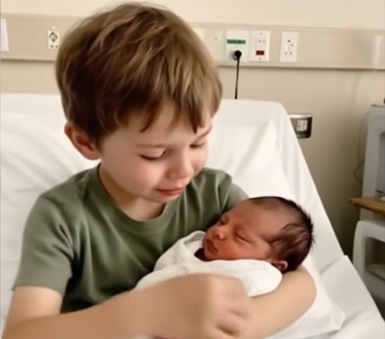 A four-year-old boy sat on the hospital bed, cradling his newborn sister with a tenderness that both warmed and broke my heart. Tears silently streamed down his cherubic cheeks,
