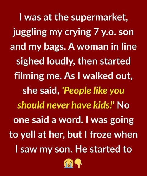 At the supermarket, I was juggling bags and my crying 7-year-old when a woman began filming me. As I walked out, she said, “People like you shouldn’t have kids.”