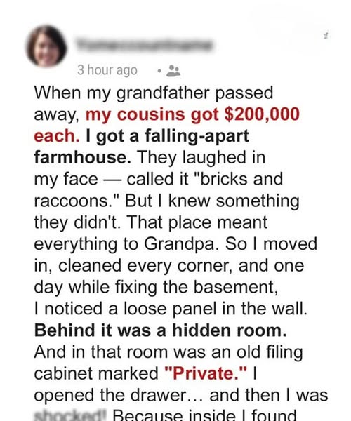 When the lawyer announced I was left the old farmhouse, the room erupted in laughter.