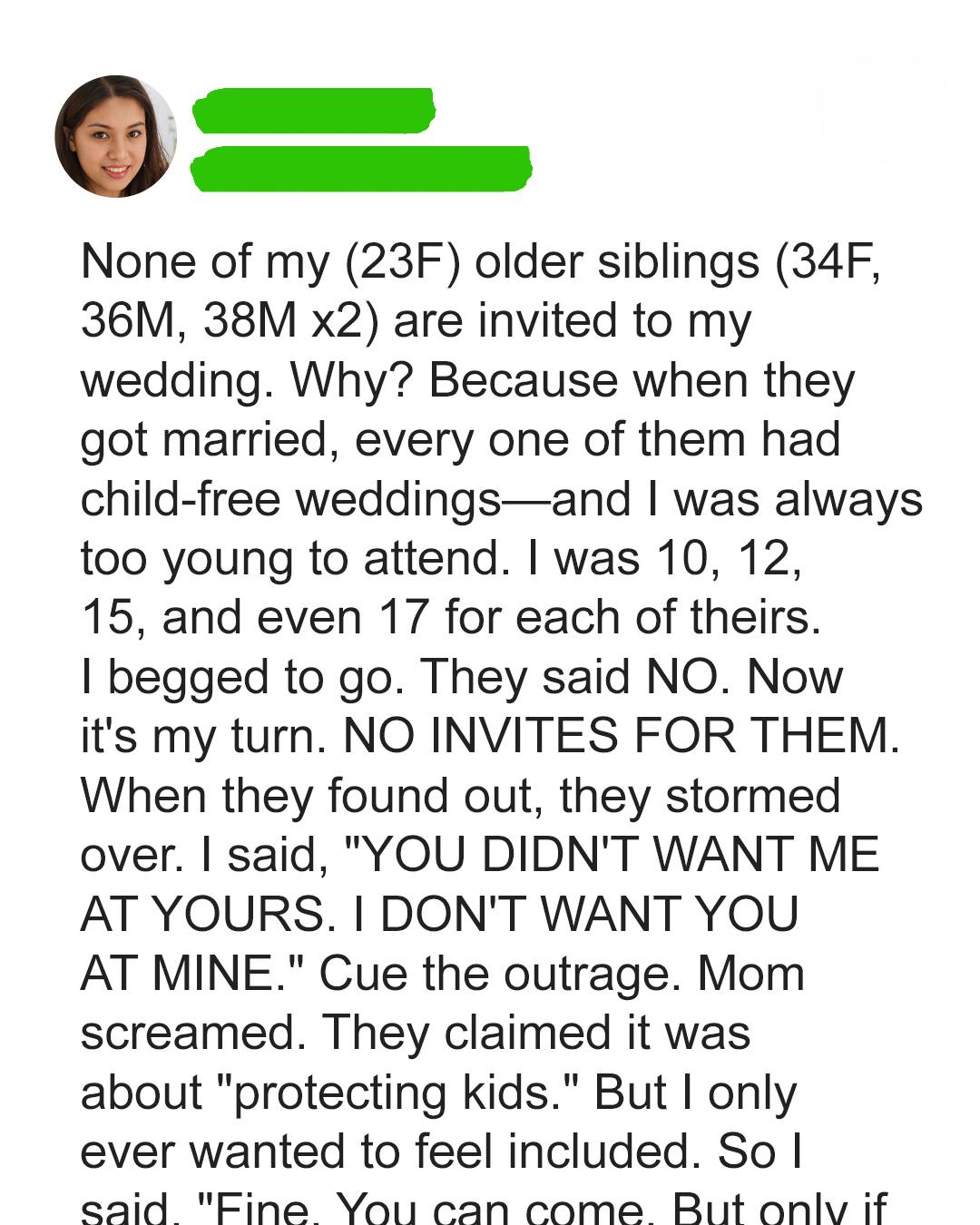 Lena had spent her whole life on the outside, always left out of every sibling’s wedding. She was the afterthought, never truly seen. By the time her own big day arrived, she made a choice: they wouldn’t be invited. Not out of malice, but because she was finally done begging for the inclusion she deserved.