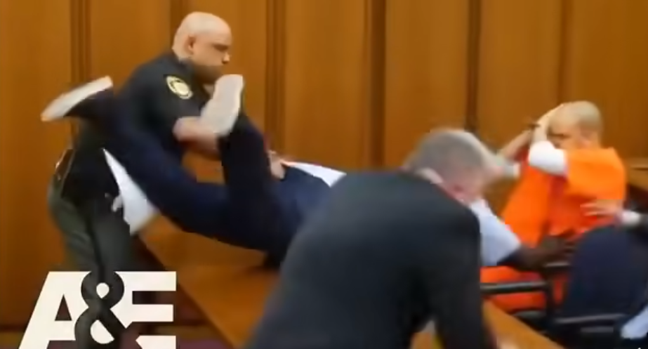 Terry then paused and turned to look behind him at Madison, who was sitting behind the defense table, before running towards the convicted killer and lunging over the table at him.