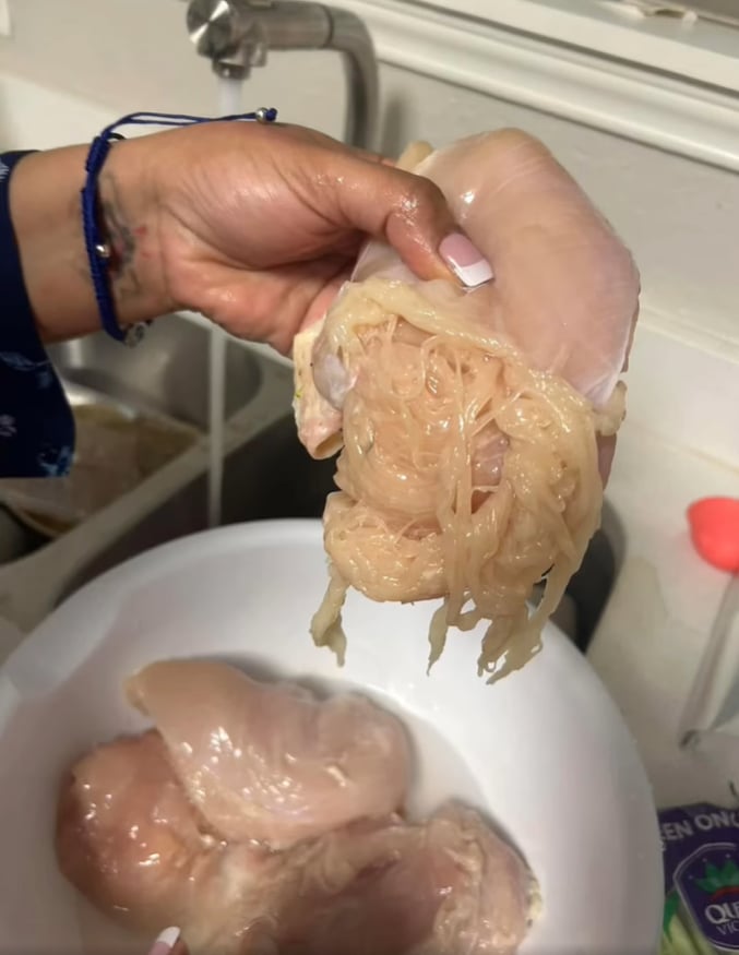 A mother was completely in sh0ck when the poultry she was preparing for dinner separated into stringy pieces of spaghetti.