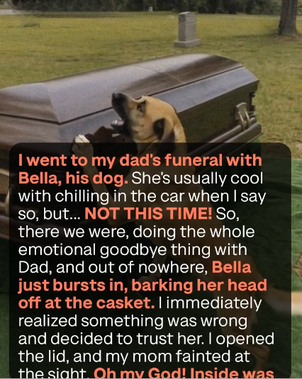 At his father’s funeral, Ryan was overwhelmed with grief—but his dog Bella sensed something was wrong. Moments before the final hymn, Bella ran into the church, barking loudly at the casket. Disturbed by her behavior, Ryan demanded the coffin be opened. To everyone’s shock, it was empty. His mother fainted, and Ryan quickly rushed her to the hospital.