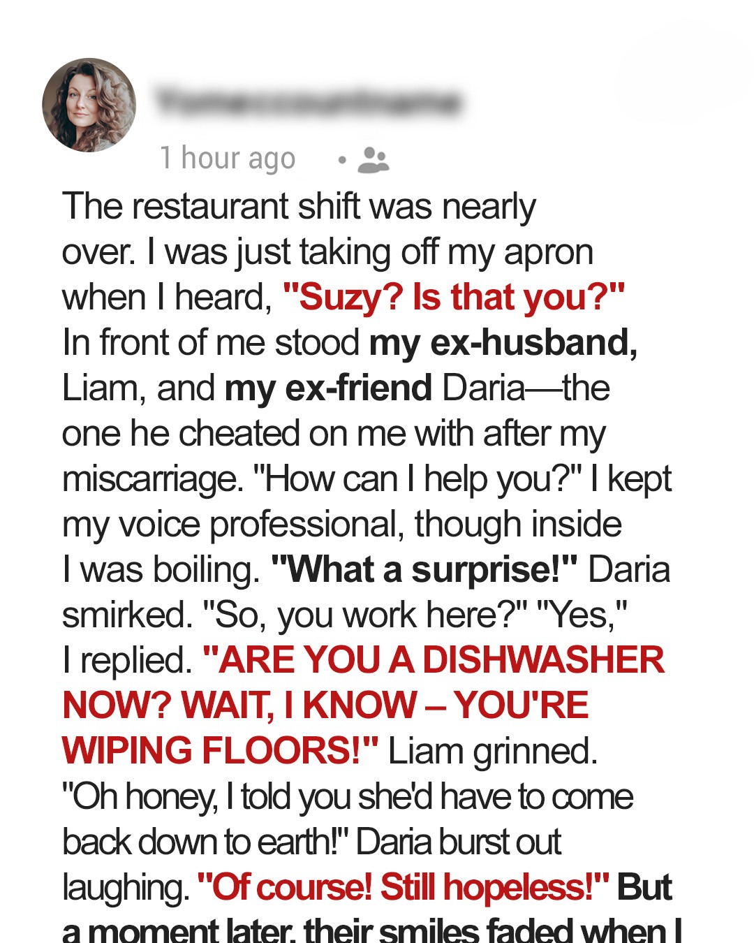 I never imagined I’d see them again. Not after everything. But there they were—my ex-husband Liam and my former best friend Daria—standing in front of me like smug ghosts from a life I buried. And the moment they opened their mouths, I realized they still thought I was the same broken woman they left behind.