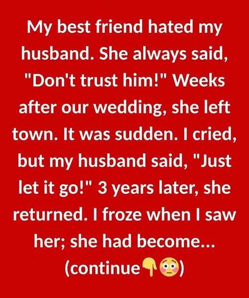 trying to get my dad full custody. Of course, neither of those things were true, and she eventually calmed down about the situation when she saw how much we loved my stepdad. But it was still shocking for me as an 11-year-old to read a bunch of misinformed, paranoid entries intended to paint my mom in the worst light possible. 2, My best friend hated my husband. She always said, “Don’t trust him!” Weeks after our wedding, she left town. It was sudden. I cried, but my husband said, “Just let it go!” 3 years later,