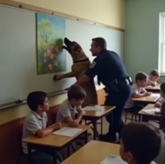 In a peaceful town renowned for its vibrant school murals celebrating unity and learning, an ordinary day during a K9 demonstration took an unexpected and extraordinary twist.