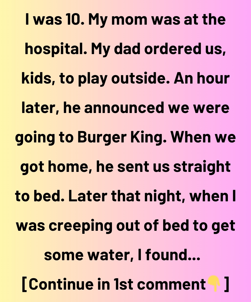 One evening, my dad told us to go outside and play while he made dinner. An hour later, he said we were having Burger King instead, and sent us to bed when we returned.