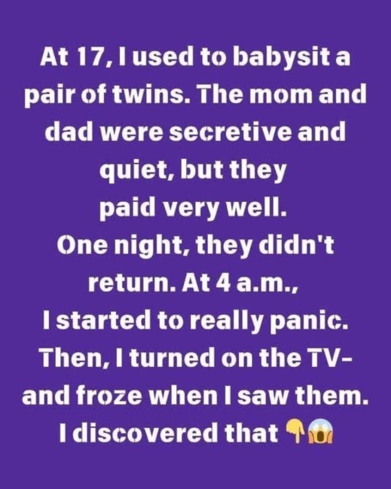 But one night, everything changed. The twins I looked after were fast asleep upstairs.