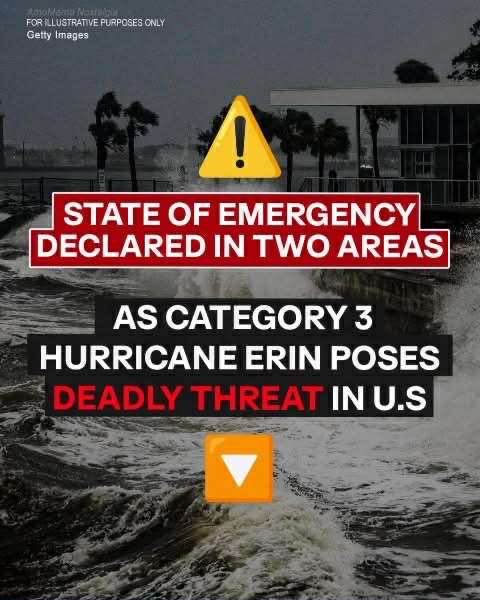 The National Hurricane Center (NHC) reported that Hurricane Erin has weakened from its peak but remains a major threat. The storm is expected to bring heavy rainfall and flooding in the Caribbean, pose risks along the U.S. East Coast, and has already triggered emergency declarations in parts of North Carolina.