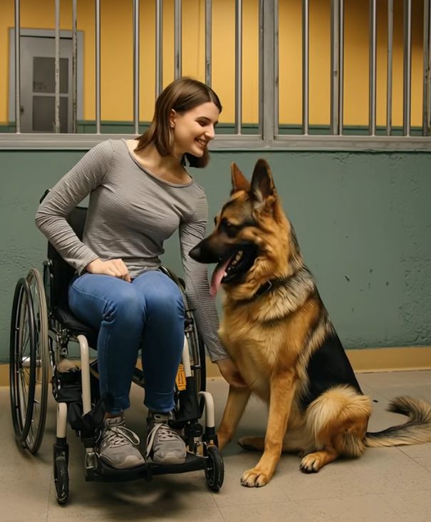 A girl in a wheelchair visited the shelter, asking to adopt the fiercest dog. The moment the shepherd saw her, it barked loudly—then did something completely unexpected…