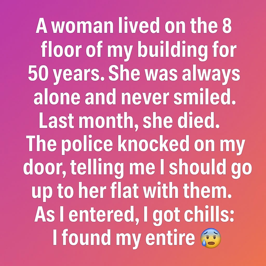 For as long as I could remember, a woman lived on the 8th floor of my building. She had been there for fifty years, always alone, always quiet, and never smiling. Most neighbors barely noticed her, and those who did whispered about her solitude.Last month, she passed away.