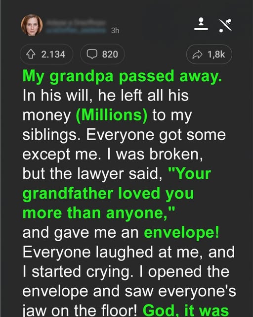 It was harder than I could have imagined. I got lost, scared, and even injured. I nearly gave up. But in my lowest moment, I remembered Grandpa’s calm voice telling me to stay strong. I pushed forward until help found me. Later, in the hospital, Aunt Daphne gave me another surprise: a wrapped gift from Grandpa—the Xbox I’d wanted but never received. “He wanted you to have it when you were ready,” she said. “When you understood the value of patience and hard work.” cried. Because I finally did. Inside the metal box was no treasure—just a jar of honey and a photo of us. But that was the point. Grandpa’s real gift wasn’t money. It was the lessons he planted in me like seeds: how to work hard,