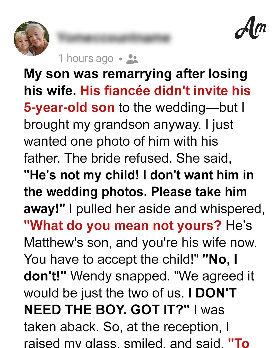 Wendy made it clear my grandson Alex wasn’t welcome—not at her wedding, not in her life. My son Matthew went along with it, but I didn’t. I played the kind mother-in-law, all smiles and compliments, but inside, I waited. Wendy didn’t just exclude Alex from the wedding. She excluded his existence. He was five, gentle, and quiet—my heart. And Matthew’s son from his first marriage.