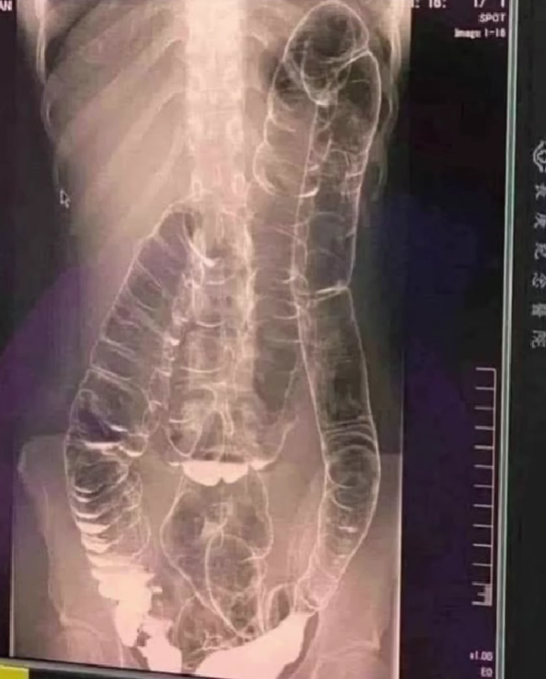 When waste accumulates in the colon due to an inefficient digestive system, it causes severe discomfort and bloating. Over time, the colon expands beyond its normal size, struggling to contain the excessive buildup of feces. In this case, medical imaging revealed a severely distended colon that had enlarged so much it reached up toward the chest, dangerously close to the heart. The stretching had nearly erased the colon’s natural folds and wrinkles, essential for its proper function. Left untreated, this condition could have led to life-threatening complications.One of the most dangerous effects of chronic constipation is severe colon distension. When the colon becomes overstretched, it loses its ability to contract properly, making bowel movements increasingly difficult. This leads to a vicious cycle in which waste remains in the body for even longer periods, further aggravating the problem.