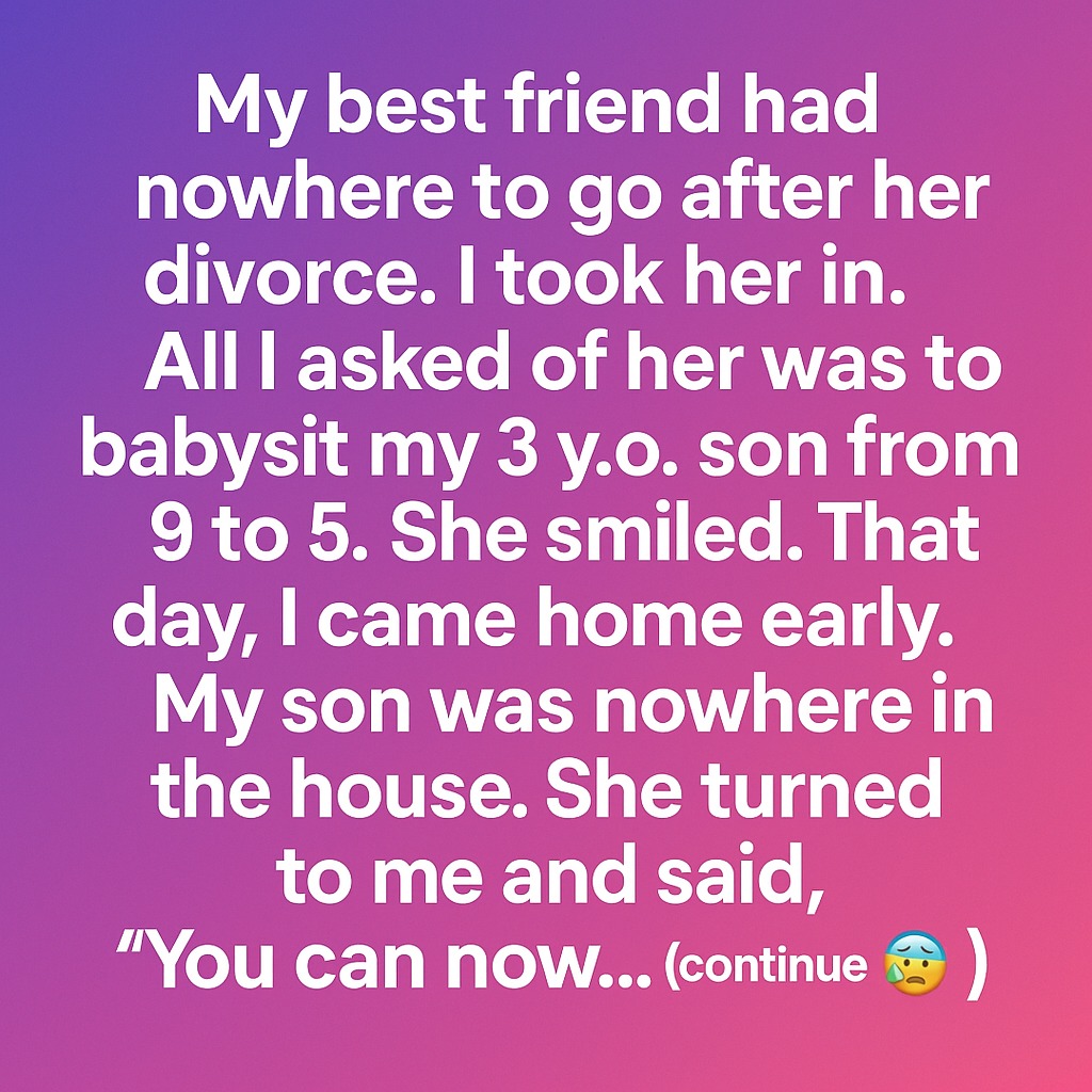 My best friend had nowhere to go after her divorce, so I took her in. All I asked was for her to babysit my 3-year-old son while I worked from 9 to 5. She agreed with a smile. One afternoon, I came home earlier than usual and found the house strangely quiet. My son was nowhere to be seen. My heart raced as I searched every room.